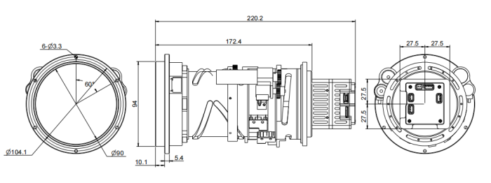Φ110 (ஃபிளாஞ்ச்) × 221 மிமீ, φ120 (அதிகபட்சம். ஒட்டுமொத்த பரிமாணம்) |