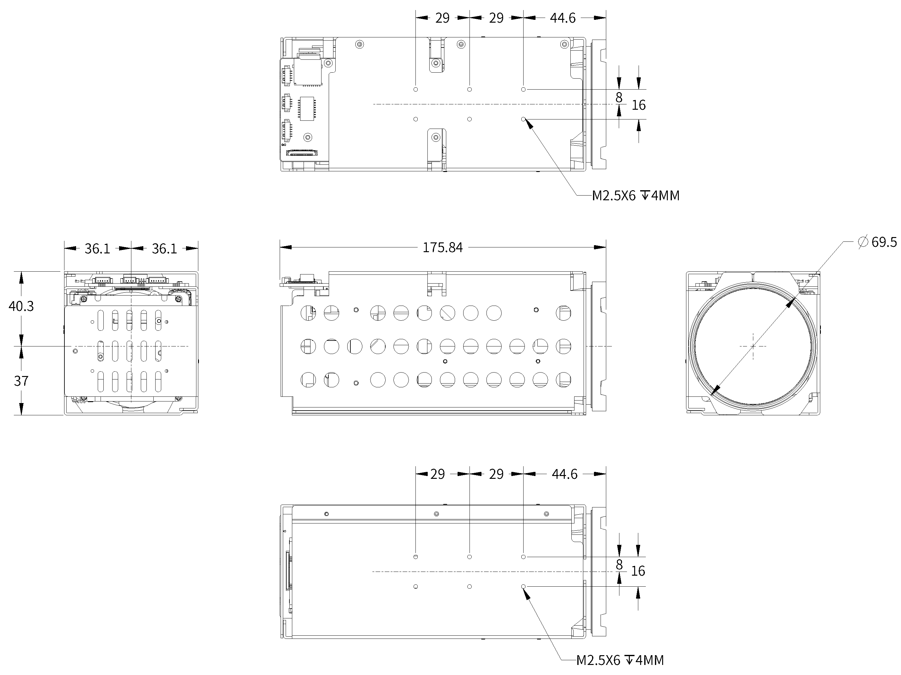 4 பைன் ஈதர்நெட் போர்ட், 6 பைன் பவர் & யுஏஆர்எல் போர்ட், 5 பைன் ஆடியோ போர்ட். 30 பின் மிப்பி |